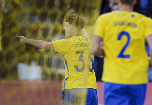 Allerede efter tre minutter gjorde Mathias Kvistgaarden det til 1–0 for værterne efter et godt gennemspillet angreb.