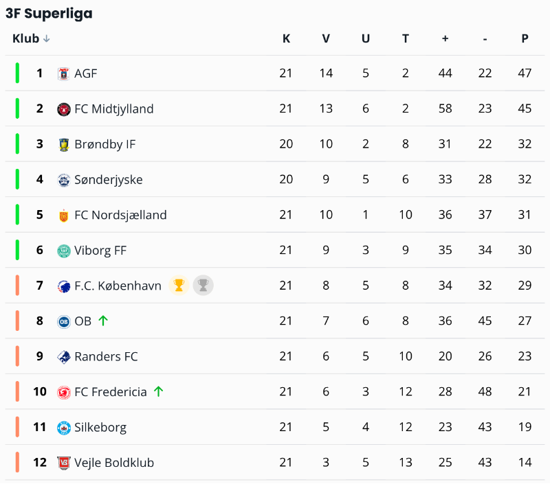 Dagens resultat betyder også, at top–4 har sikret sig en plads i mesterskabsspillet. Forinden 22. spillerunde skal FC Nordsjælland, Viborg FF og FC København duellerer om en top–6 placering.